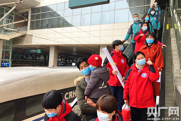 醫療隊搭乘高鐵前往武漢(央廣網記者 堯遙 攝)
