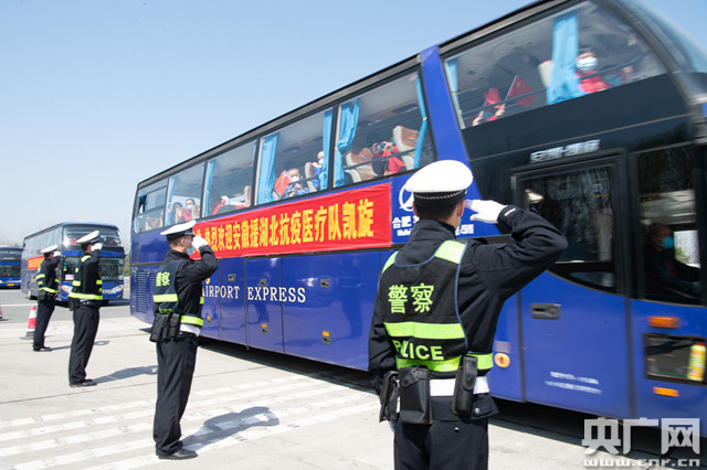 合肥交警護航支援武漢白衣戰士凱旋(央廣網發 合肥市公安局供圖)