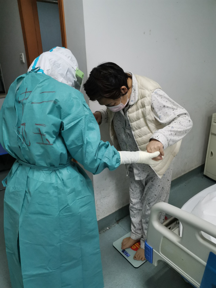 “在過去一個多月里,我們和患者們培養了深厚感情。我們為患者提供治療和護理,患者也帶給我們感動和力量。這種醫患之間建立的信任,對我們來說是一份寶貴的禮物,也是一段珍貴的回憶。”隊長李青表示,在站好最后一班崗上,隊員們為即將出院的患者送上電子秤作為“特別禮物”,指導他們使用電子秤觀察營養狀況并進行相關科普教育。