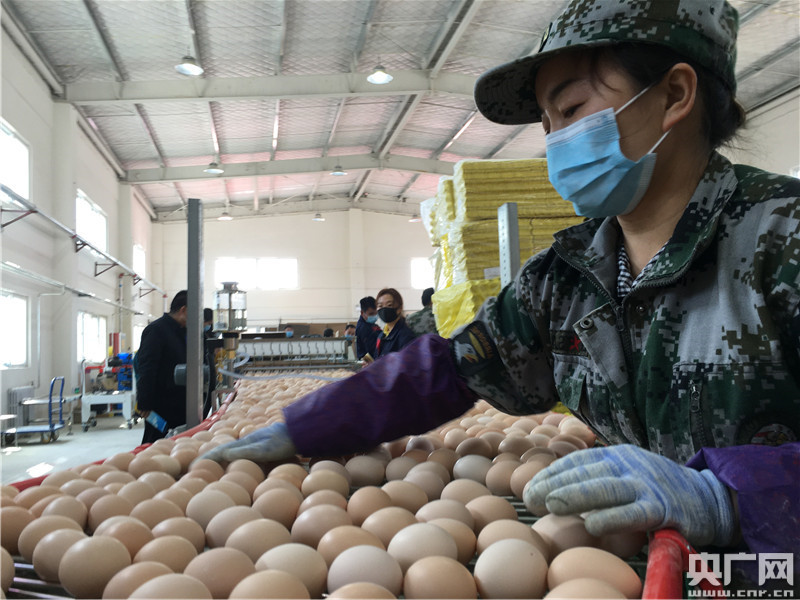 禮縣金雞產業園車間工人正忙著分揀雞蛋(央廣網記者 張磊攝)