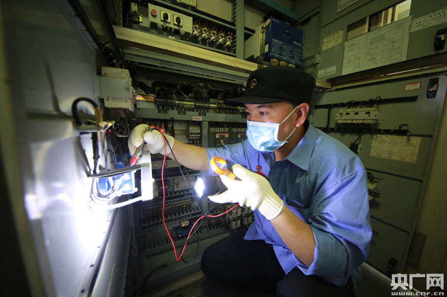 成都車輛段工作人員正在檢修列車(央廣網發 通訊員供圖)