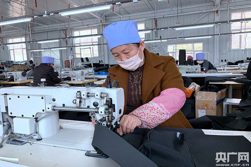 生產包具的扶貧車間(央廣網記者 彭照 攝)