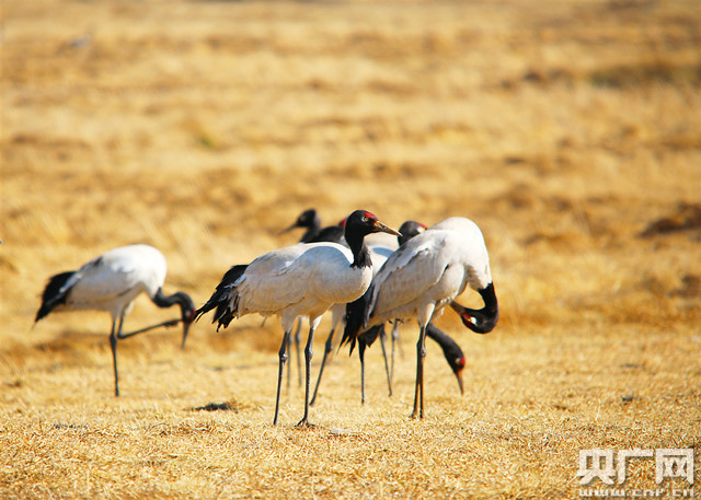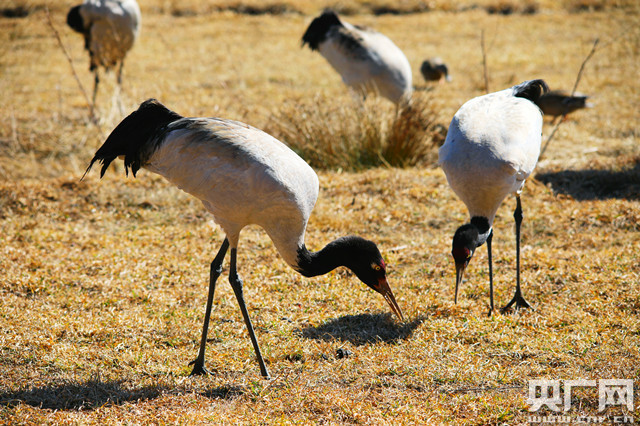云南昭通大山包越冬黑頸鶴北遷完畢(央廣網發 鄭遠見 攝)