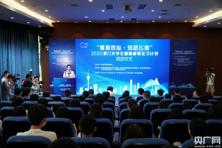 央廣網珠海7月20日消息(記者郭翔宇 通訊員劉心宇)今天,2020年“琴澳同心·筑夢飛翔”澳門大學生暑期橫琴實習計劃啟動儀式在橫琴·澳門青年創業谷舉行,橫琴迎來近百名澳門大學生開展為期四周的暑期實習之旅。橫琴新區黨委副書記李偉輝、珠海市臺港澳事務局副局長杜小平、珠海市青年聯合會副主席王迎奎,橫琴新區相關部門及用人單位代表和實習生約130人出席啟動儀式。