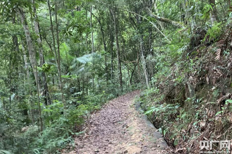 保護區內的山路,四周密布著原始次生林(央廣網 王雪薇 攝)