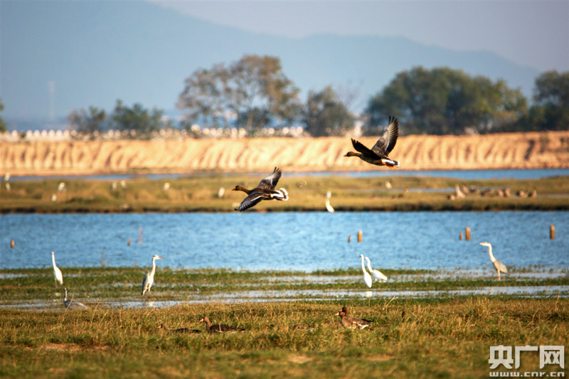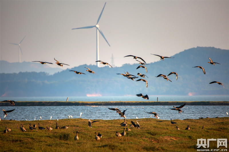 鄱陽湖候鳥聚集成群(央廣網發 通訊員供圖)