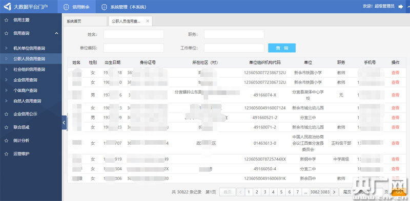 就在剛剛,張靜收到了市委組織部的來函,要求查詢20多位公職人員的信用情況,這項(xiàng)以前需要花費(fèi)數(shù)天時間前往各個單位收集數(shù)據(jù)的工作,如今動動手指,不到10分鐘就可以完成。“打開這里,輸入被查詢的人員姓名和單位名稱,點(diǎn)一下,你看,所有數(shù)據(jù)就全部都出來了。”張靜一邊操作電腦一邊給我們演示。