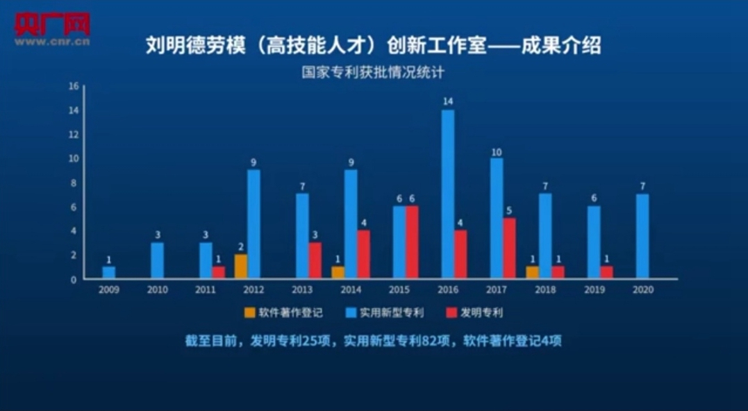 2016年8月,“劉明德勞模(高技能人才)創新工作室”成立,迄今累計獲得111項國家專利。
