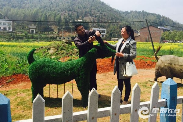 星辰在線3月29日訊(星辰全媒體記者 劉志峰 通訊員 周可)推著土車子的“老農(nóng)”、揚蹄的“駿馬”、側(cè)臥的“大狗”……各種材質(zhì)的十二生肖藝術(shù)品,在瀏陽市金剛鎮(zhèn)石霜村的道路兩旁隨處可見,栩栩如生。走近一看,才發(fā)現(xiàn)這些“杰作”都是由廢棄鋼材、泡沫、麻袋、廢輪胎、綁繩制成的。從去年開始,長沙市青山綠水環(huán)保志愿協(xié)會以石霜村作為試點,指導居民進行垃圾分類減量,并為他們配備了垃圾分類柜。