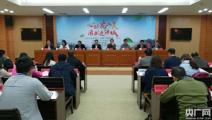 央廣網崇左3月28日消息(記者 張雷)近日,由廣西新聞網與崇左市委宣傳部聯合舉辦的“心醉花山美 活力邊陲城——2017山水崇左全國手機媒體三月行”活動在崇左市拉開序幕,來自全國重點新聞網站的媒體記者走進崇左將在四天的時間里,深入崇左各地,在木棉花開的山水中欣賞花山巖畫,在壯鄉歌海中品獨特美食,共同探索邊城發展方式。 -