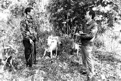 圖為向文川(右)向農戶了解山羊養(yǎng)殖中的困難情況。