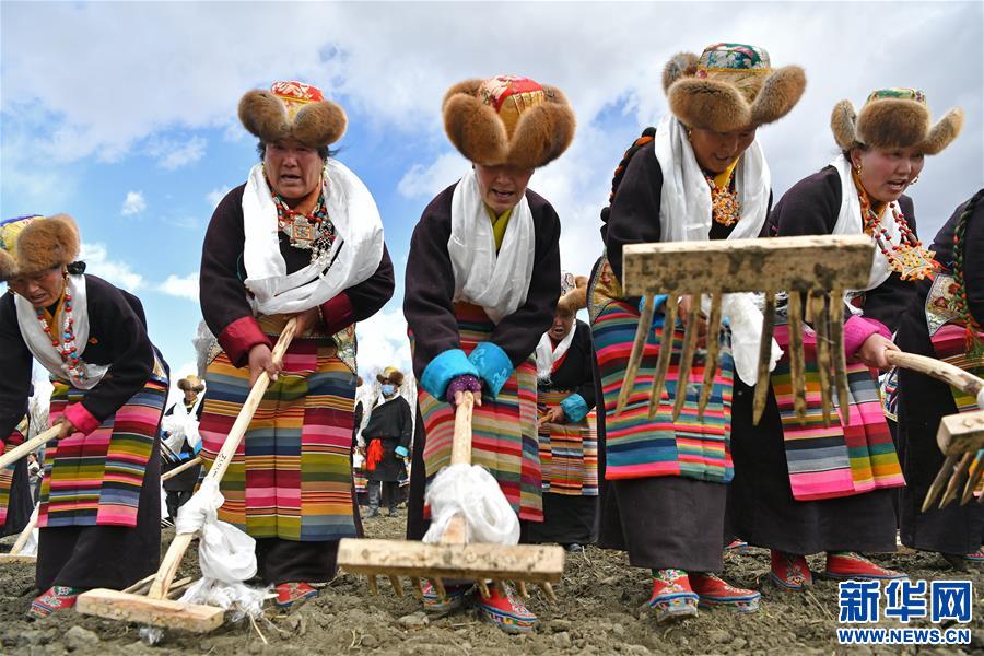 春耕儀式即將結束時,人們唱起了《門諧》,這是一首農民犁地時唱的古老歌謠。人群中,年逾古稀的達娃老人顯得分外高興。她說:“民主改革前,我們過著吃不飽肚子的生活,現在的日子越來越好,種糧食政府還給補貼呢。”