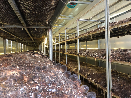 在能源上循環中,食用菌種植主要以草菇和雙孢菇為主。草菇種植的主要原料為稻草、玉米等農作物秸稈,草菇種植后的廢料就作為雙孢菇種植的原料,通過添加土及其它配料發酵生產,有機廢水通過污水處理達標后用于農業灌溉,實現了秸稈回收和污水變凈水等能源上的循環。