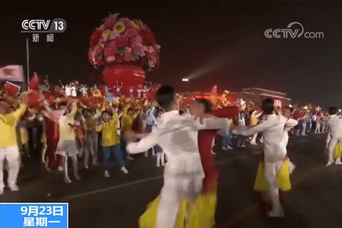 根據此前公布的消息,聯歡活動將于10月1日晚8時在天安門廣場舉行,總時長90分鐘。整個聯歡活動由主題表演、中心聯歡表演、群眾聯歡、煙花表演四個功能表演區組成。