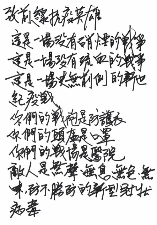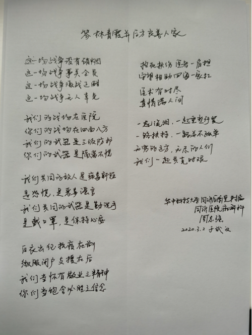 看到這封青霞手書,同濟醫院麻醉科的周志強醫生,也寫了一首詩,作為回應。