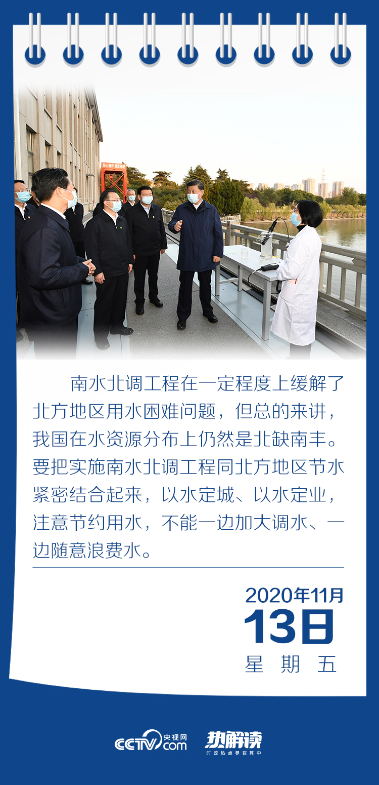 2014年12月,南水北調中線一期工程正式通水時,總書記又作重要指示,指出南水北調工程功在當代,利在千秋。希望繼續堅持先節水后調水、先治污后通水、先環保后用水的原則,不斷造福民族、造福人民。