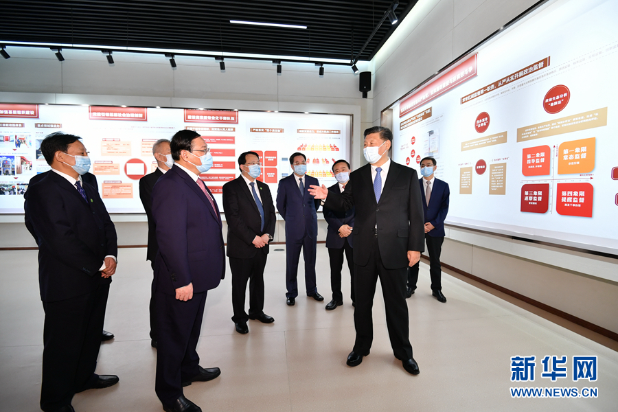 慶祝大會后,總書記來到浦東展覽館,參觀“在國家戰略的引領下——浦東開發開放30周年主題展”。