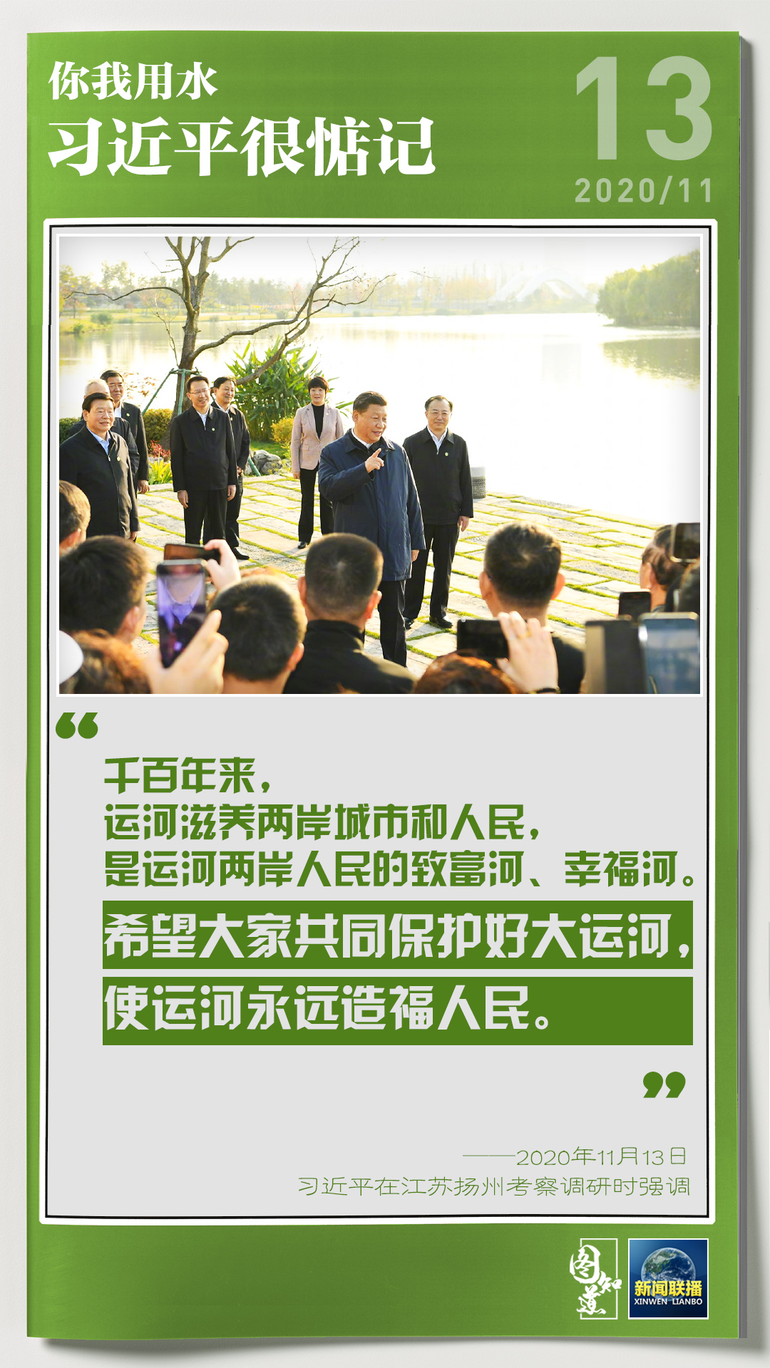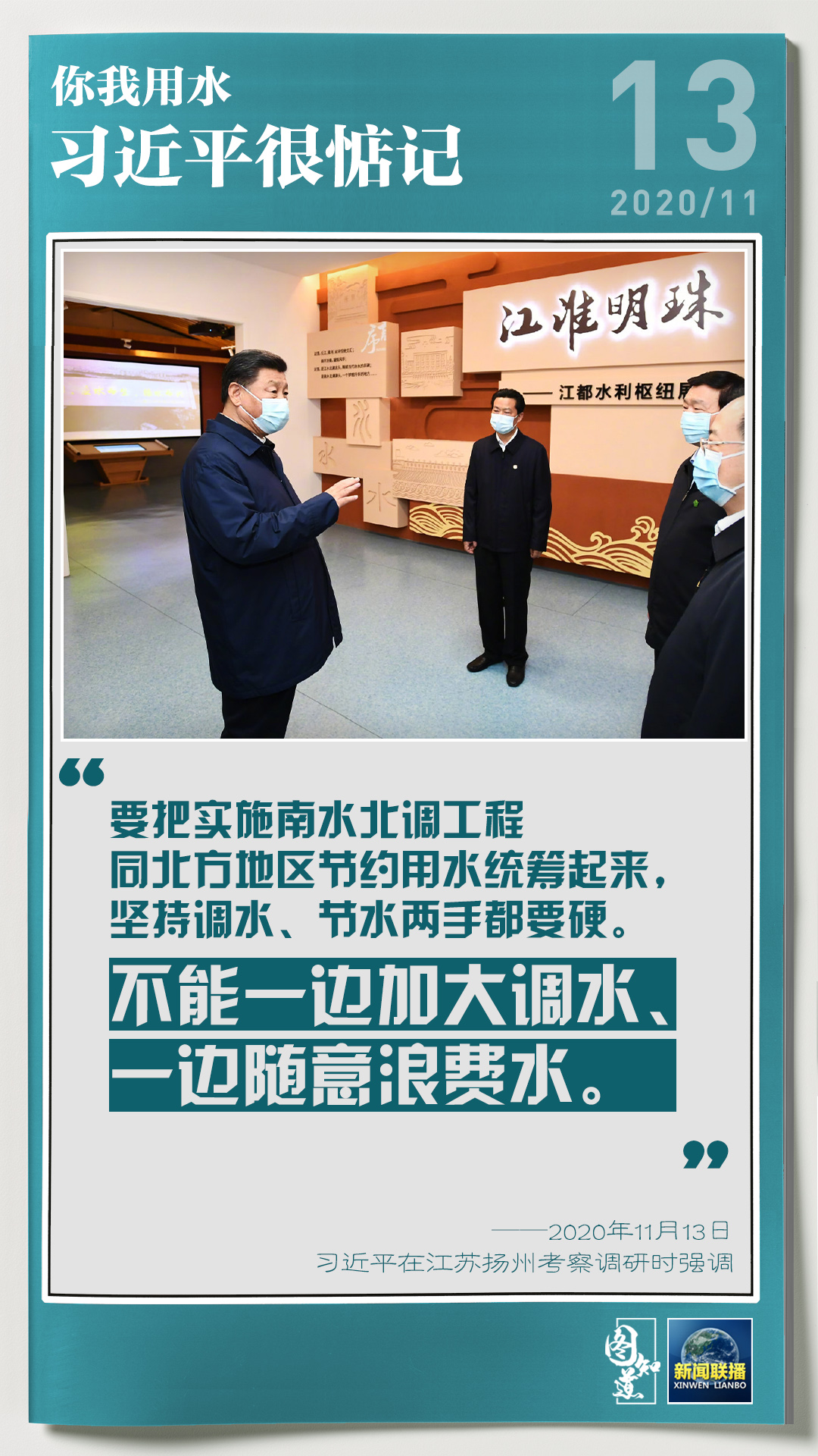 13日,習近平總書記在江蘇考察調研,了解南水北調東線工程和江都水利樞紐建設運行等情況。