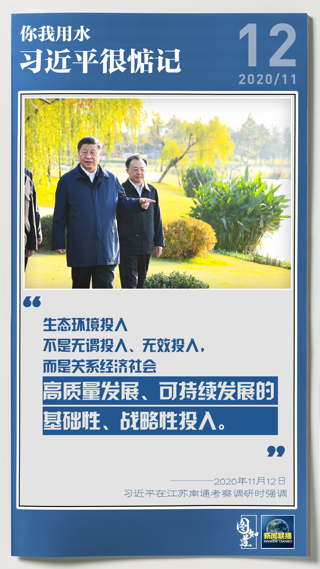 13日,習近平總書記在江蘇考察調研,了解南水北調東線工程和江都水利樞紐建設運行等情況。民生為上,治水為要。近年來,習近平始終牽掛著我們的生活生產用水問題,多次在不同場合作出重要指示、提出要求。