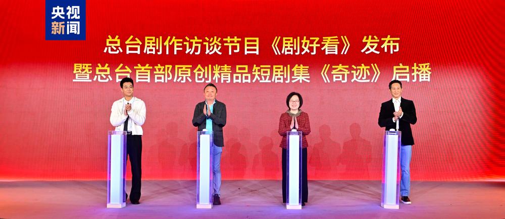 △中央廣播電視總臺影視劇紀錄片中心主任梁紅,導(dǎo)演沈嚴,演員王勁松、高至霆共同啟動《劇好看》發(fā)布和《奇跡》播出