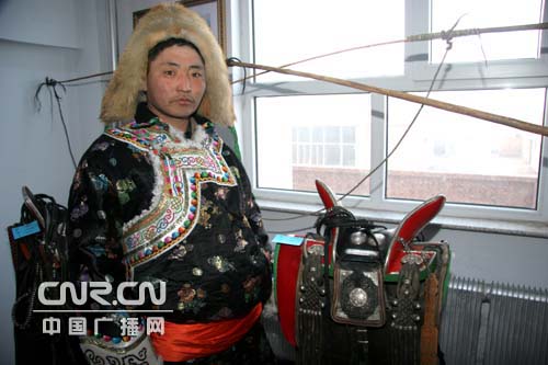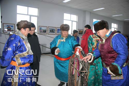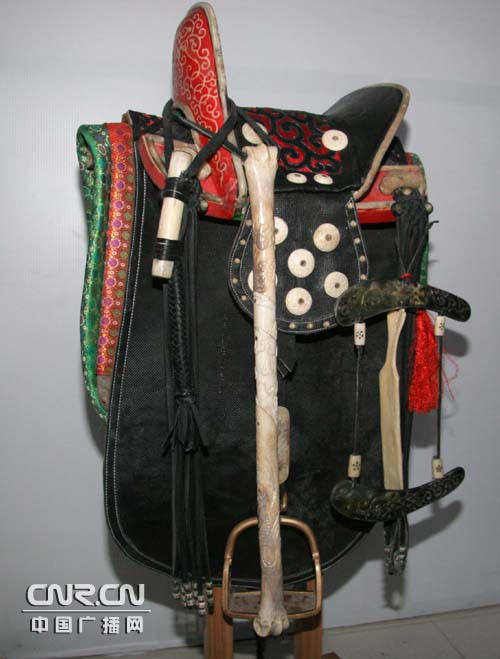 馬鞍、馬具與套馬桿 中廣網(wǎng)呼和浩特1月30日消息 (記者阿都欽)千百年來,內(nèi)蒙古大草原孕育出燦爛的民族文化,保護、傳承一種歷史文化就等于擁有了一個世界。前不久,在內(nèi)蒙古東烏旗舉辦的第四屆“吉祥·烏珠穆沁”草原冰雪那達慕期間,這里舉辦了一個別開生面的馬具展覽。展出的馬鞍、馬具用呂、套馬桿等展品都是出自牧民之手。開展時展覽館人頭攢動,很是吸引觀眾的眼球。
