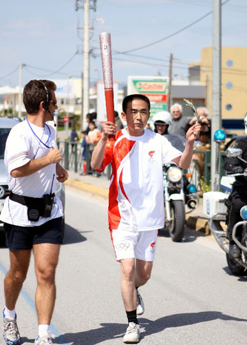 新華網(wǎng)希臘馬拉松3月29日電(記者張榮鋒 梁業(yè)倩)全二平,一名來自內(nèi)蒙古自治區(qū)的普通的鄉(xiāng)村郵遞員,29日中午他作為第二十六棒火炬手高舉奧林匹克圣火,踏上了希臘古老的馬拉松之路。