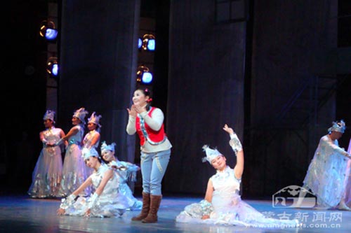 7月9日晚,大型現代漫瀚劇《暖雪》在內蒙古人民會堂進行第一場演出。