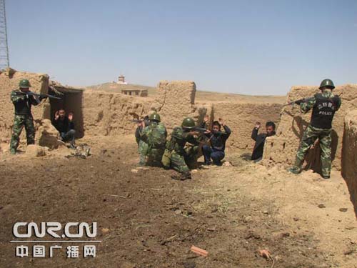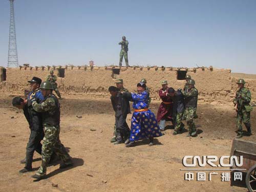 中廣網呼和浩特5月8日消息(記者鄭穎 通訊員白生云)為深入貫徹落實奧運安保工作,切實提高官兵處突維穩能力,內蒙古包頭市達茂旗滿都拉邊防派出所結合轄區實際,于5月6日在口岸301哨所附近組織開展了一次軍、警、民聯合處突演練。