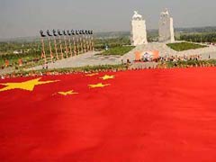 7月10日,最后一棒火炬手斯琴高娃高舉火炬。當日,北京奧運圣火在內蒙古自治區赤峰市傳遞。 新華社記者張領攝
