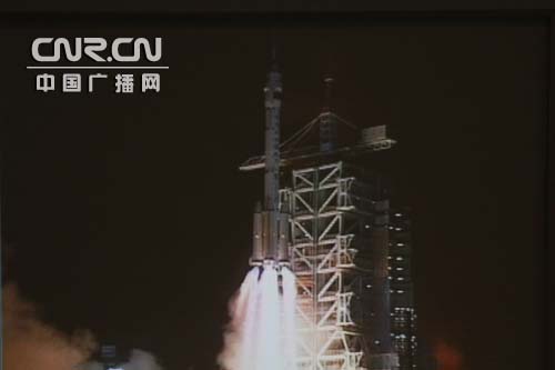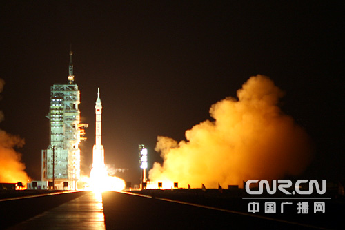 搭載著神舟七號載人飛船的長征二號F遙七運載火箭起飛瞬間(記者南光 曹囡囡 攝)