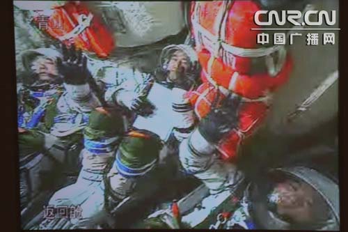 三位航天員揮手致意(記者南光 曹囡囡 攝)