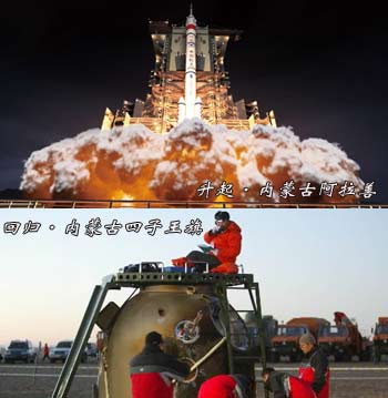 航天員劉伯明(左)把一面小國旗遞給翟志剛(右)。(中廣網記者南光 曹囡囡攝)