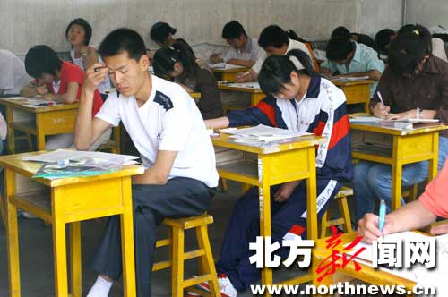 6月7日,考生在呼和浩特第6中學考點沉著應考。當日呼和浩特市14個考場內外秩序井然,考試進行順利。(攝影/本報記者馬建荃)