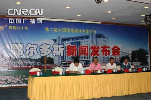 中廣網(wǎng)鄂爾多斯7月22日消息 (記者李志勇 劉紅衛(wèi)) 7月21日,“魅力內蒙古 輝煌60年——第二屆中國網(wǎng)絡媒體內蒙古行”大型宣傳活動在內蒙古鄂爾多斯市啟動,來自中央級重點新聞網(wǎng)站及各省級重點新聞網(wǎng)站的記者齊聚天驕圣地,目睹鄂爾多斯發(fā)展模式,領略鄂爾多斯璀璨文化。