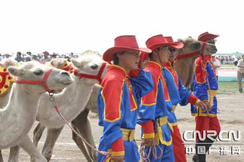 開幕式上駱駝馬戲表演團入場