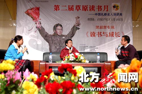 中廣網呼和浩特11月19日消息 18日上午,“伊利·書香伴著乳香飄——第二屆草原讀書月”活動的又一項重要內容——“中國乳都名人演講周”正式拉開序幕,感動中國2005年度人物、中國十大杰出青年洪戰輝應邀在內蒙古師范大學進行了一場精彩的演講。在兩個多小時的演講中,洪戰輝講述了他的“昨天,今天,明天”,內蒙古師范大學的數百名學生前來傾聽。