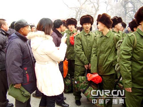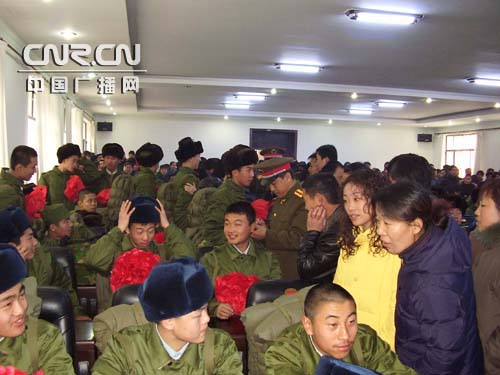 中廣網(wǎng)呼和浩特12月14日消息 (記者阿都?xì)J 通訊員紀(jì)明國 王伊春)12月12日,內(nèi)蒙古扎蘭屯市126名應(yīng)征青年光榮參軍入伍。當(dāng)他們就要離開家鄉(xiāng)父老鄉(xiāng)親起程奔赴軍營的時候,扎蘭屯市為他們舉行了隆重的歡送儀式。