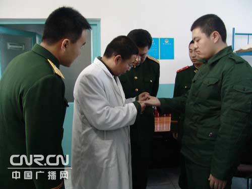 中廣網呼和浩特12月18日消息(記者鄭穎 通訊員馮常財)為了確保新同志從生理、心理和身體上都能夠順利度過適應期,盡快適應新訓環境,避免出現各種疾病,困擾新訓生活,影響新訓質量。12月17日,呼倫貝爾支隊衛生所開展了送醫送藥活動,派出醫術精湛的醫生對新同志進行巡診,做到早發現、早治療、早恢復,確保新訓任務的圓滿完成。