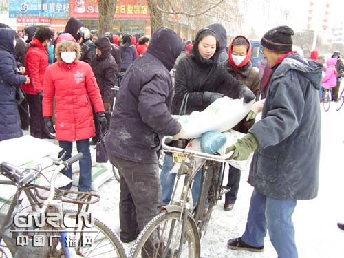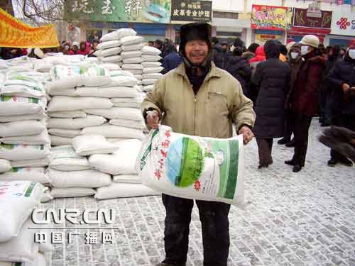 扎蘭屯下崗特困職工領到過年餃子面粉(圖)