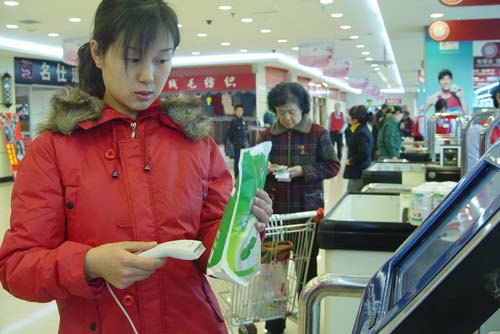 中廣網呼和浩特1月29日消息(記者文偉 通訊員李健) 內蒙古呼和浩特市新城工商分局春節前,在轄區最大超市華聯金泰超市結算臺和投訴臺兩側設置了查詢系統,消費者購買商品在觸摸屏上查詢信息時,當場即可獲得商品的真實身份。只要用掃描槍對準所購商品上的條形碼一掃,就會在屏幕上顯示出該商品生產日期、保質期等質量信息和用紅黃兩種顏色條提示的商品保質期預警信息,進一步可查詢到該商品生產廠家的營業執照、生產許可證、質量認證書、質量檢驗合格證等五種備案信息。