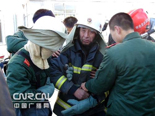 經(jīng)過3名消防官兵30余分鐘的攀爬和多次勸說,該老年男子終于答應(yīng)下來。但是由于他在塔上時間過久,再加上零下27度以上的嚴寒,人的整個身體基本凍僵,已無法依靠自己的力量安全回到地面。專勤班長劉先飛立即把自己的手套,棉戰(zhàn)斗服脫下為被營救者暖和身體。隨后,副中隊長張浩根據(jù)事先的方案在二名班長配合下攜帶安全繩和頭盔,他們一前、一中、一后保護這位老人下塔。
