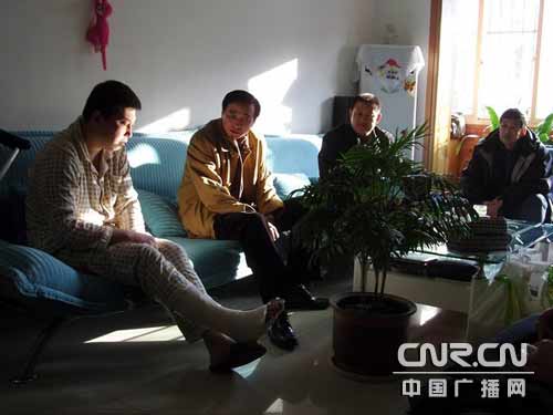 中廣網呼和浩特2月4日消息(記者鄭穎 通訊員張強、周軍)2008年2月2日,呼和浩特鐵路局工會主席曲永堂一行在包頭鐵路公安處領導的陪同下代表自治區、鐵路局看望了因公負傷的自治區勞動模范、全國優秀人民警察張佩寧同志,在送去了慰問金和慰問品的同時也帶去了組織的關心和問候。