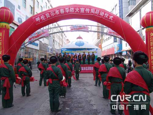 中廣網(wǎng)3月18日消息(記者鄭穎 通訊員馮常財)3月17日上午,內(nèi)蒙古呼倫貝爾市龍鳳大廈門前,鑼鼓聲聲、彩旗飄揚,10余臺消防執(zhí)勤車輛、特種車、消防宣傳車分列兩側(cè),呼倫貝爾市政府隆重舉行“消防安全進牧區(qū)、進氈房、進林區(qū)暨春季防火宣傳周”啟動儀式。