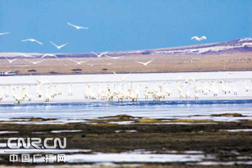 中廣網呼和浩特4月9日消息(記者文偉 通訊員何鍵、楊鳳波)清明節前后,隨著大量候鳥由南向北遷徙,上萬只天鵝在東北亞重要的候鳥集散地之一,赤峰市克什克騰旗達里諾爾湖的湖畔嬉戲覓食,構成了一幅和諧壯美的大自然畫卷。克什克騰旗達里湖自然保護區做好了候鳥歸來的保護工作,在湖邊和湖水流域地段設看護點10多處,并派專人巡護以防有人偷獵。