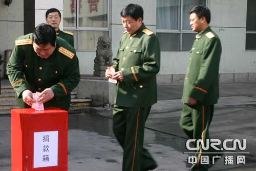 中廣網(wǎng)呼和浩特4月9日消息(記者鄭穎、劉俊霞)4月9日上午,在溫暖的春日下,內(nèi)蒙古消防總隊(duì)193名機(jī)關(guān)干部為興安盟11名貧困學(xué)生捐款3萬多元。內(nèi)蒙古消防總隊(duì)后勤部副部長(zhǎng)錢占福介紹,本次捐款之后,消防總隊(duì)還會(huì)建立“一對(duì)一”幫扶,直到11位學(xué)生完成學(xué)業(yè)為止。 據(jù)了解,內(nèi)蒙古消防總隊(duì)對(duì)內(nèi)蒙古興安盟貧困地區(qū)的幫扶已有近三年時(shí)間。自2006年起,消防總隊(duì)定點(diǎn)幫扶興安盟貧困地區(qū)科右中旗東白音套海嘎喳貧困戶。在過去的兩年中,幫扶工作從治理荒山生態(tài)建設(shè)入手,開展以水澆地建設(shè)和林草業(yè)建設(shè)為主要內(nèi)容的農(nóng)田草木場(chǎng)建設(shè)和脫貧致富為目標(biāo),狠抓深水井水泵灌溉和電網(wǎng)改造,解決農(nóng)民用水、照明用電問題,為當(dāng)?shù)剞r(nóng)牧民解決看病難實(shí)際困難,開展了一系列幫扶工作,起到了良好的效果。