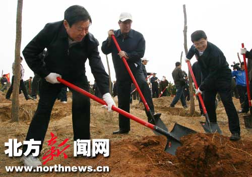 上午9時40分,位于新城區(qū)保合少鄉(xiāng)的大青山義務植樹基地熱火朝天。自治區(qū)以及呼和浩特市有關領導一下車就加入到植樹的隊伍中,大伙兒紛紛拿起鐵鍬忙了起來,回填土、定植苗木、澆定根水、培土扶正……自治區(qū)黨委書記儲波一邊認真地往樹坑里填土,一邊與一起植樹的有關領導交談,了解植樹的相關情況。在得知苗木成活率可以達到90%以上時,儲波滿意地點著頭說:“讓大青山綠起來,是好幾代內蒙古人的夙愿。”當?shù)弥嘤豢脟睒涿缧枰?00多元時,儲波叮囑林業(yè)人員:“花這么大的成本搞綠化,一定要加強管護!”