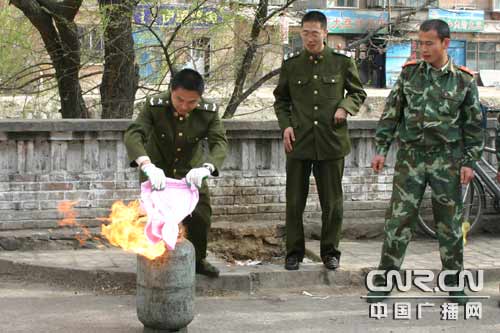 講座之后,來自呼和浩特消防特勤2中隊的消防戰士就煤氣罐起火、燃油起火等情況,現場演示了正確的滅火方法,干休所的武警官兵也現場試驗操作。