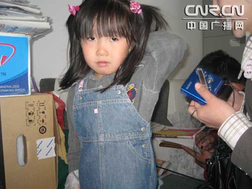 和媽媽一起來捐款的小女孩