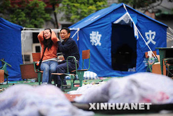 在綿陽市中心醫(yī)院,很多手術(shù)室都被挪到了外面的帳篷里。“目前救治傷員遇到的最大問題就是不斷的余震,余震給人帶來持續(xù)的恐懼。” 綿陽市中心醫(yī)院院長王東說。19日晚上,抗震救災(zāi)指揮部傳來將有6至7級余震,醫(yī)院當(dāng)時一片恐慌和混亂。“手術(shù)不得不停止下來,趕緊把傷員轉(zhuǎn)移到帳篷中, 如果再這樣震下去,我也心驚膽戰(zhàn)……”