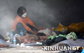 5月15日,木魚中學(xué)學(xué)生白妤蔓的父母(前)在女兒的遺體前悲痛萬分。在汶川地震中,四川省青川縣木魚中學(xué)275名學(xué)生死亡,30名學(xué)生下落不明。 新華社記者 陶明攝